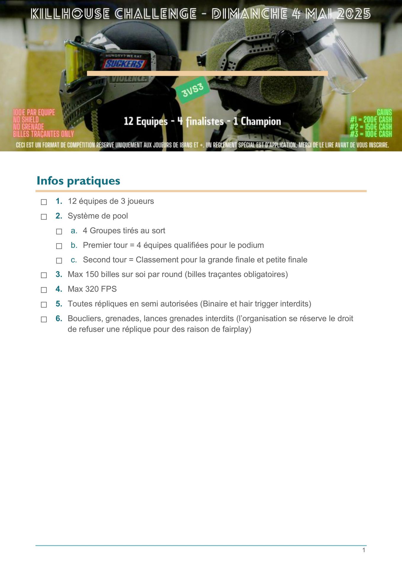 Inscrits toi dés maintenant avec deux autres joueurs pour former une des 12 équipes qui vont concourir pour la première place.